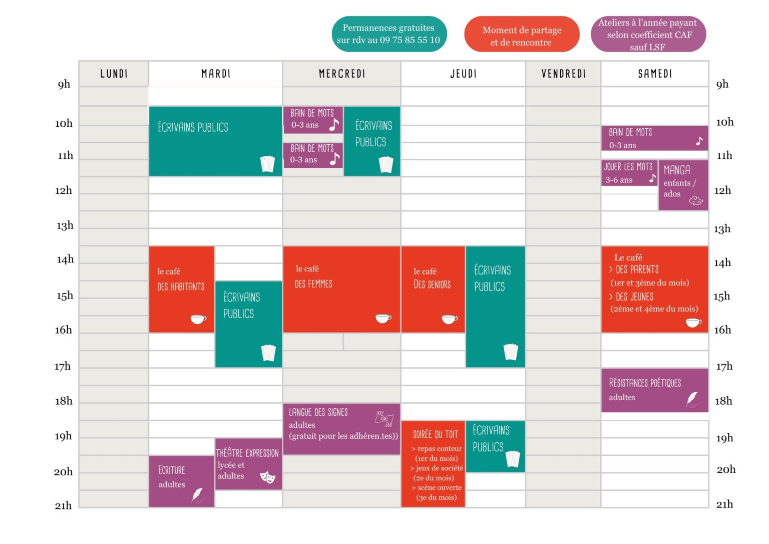 De 13h30 à 16h (sauf vacances scolaires) :